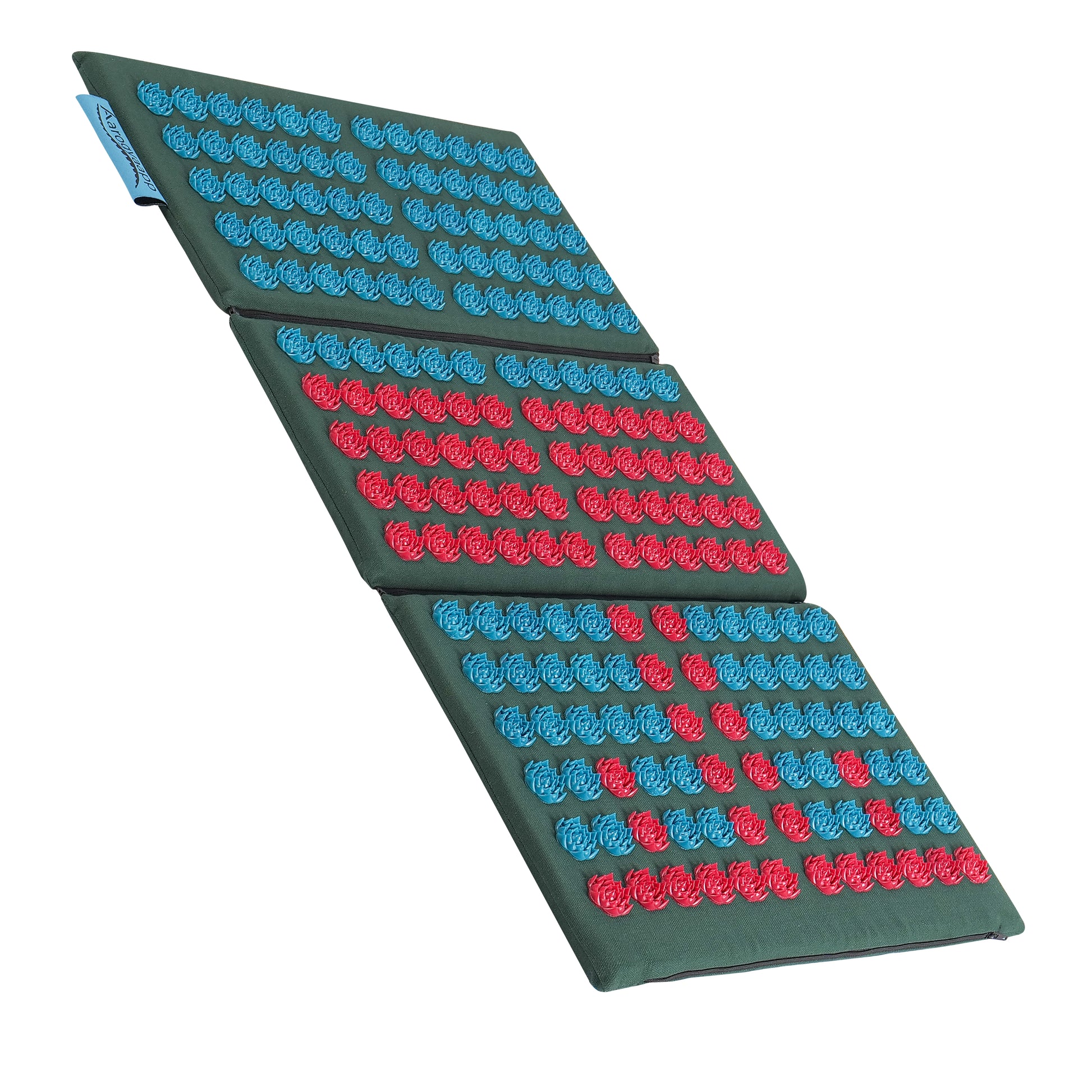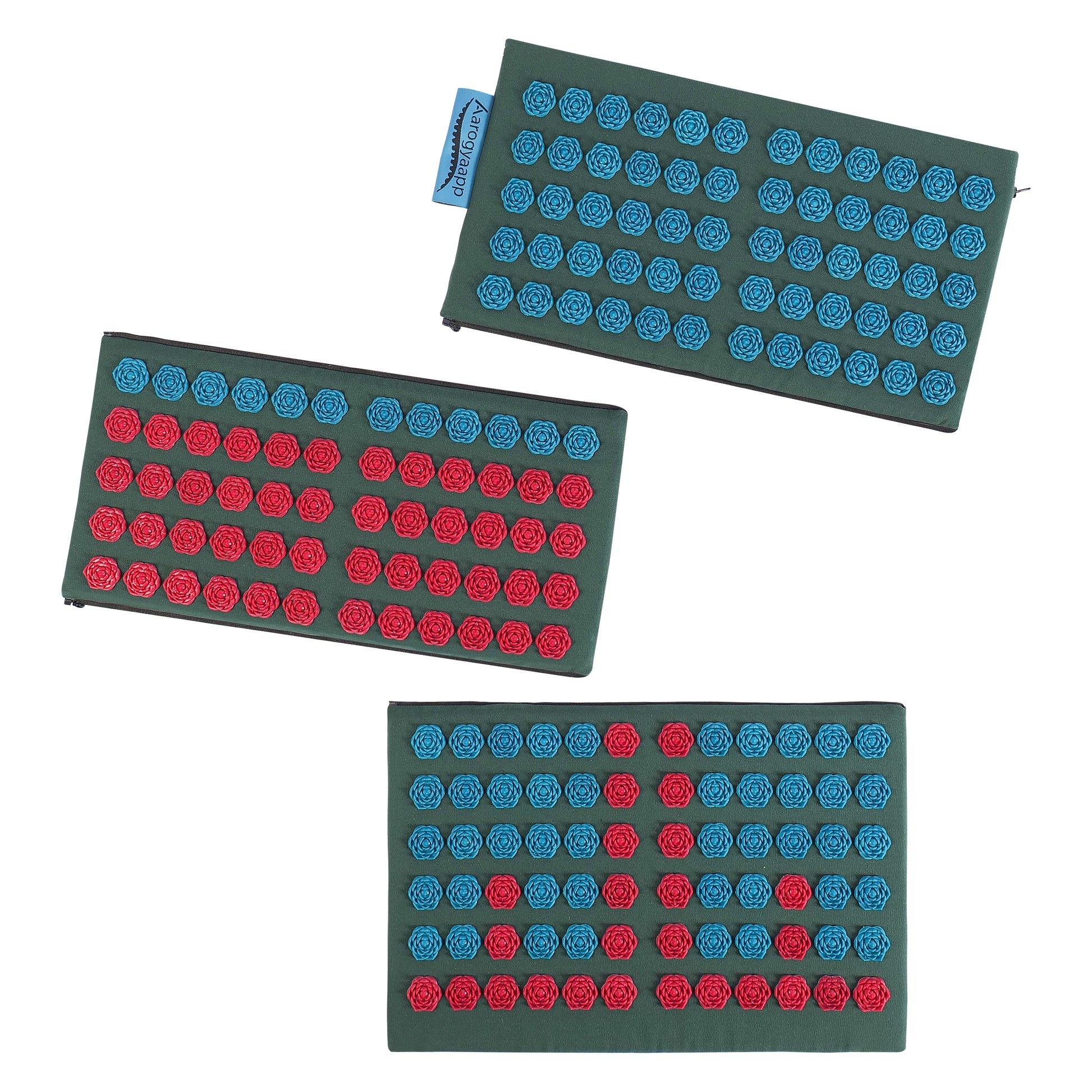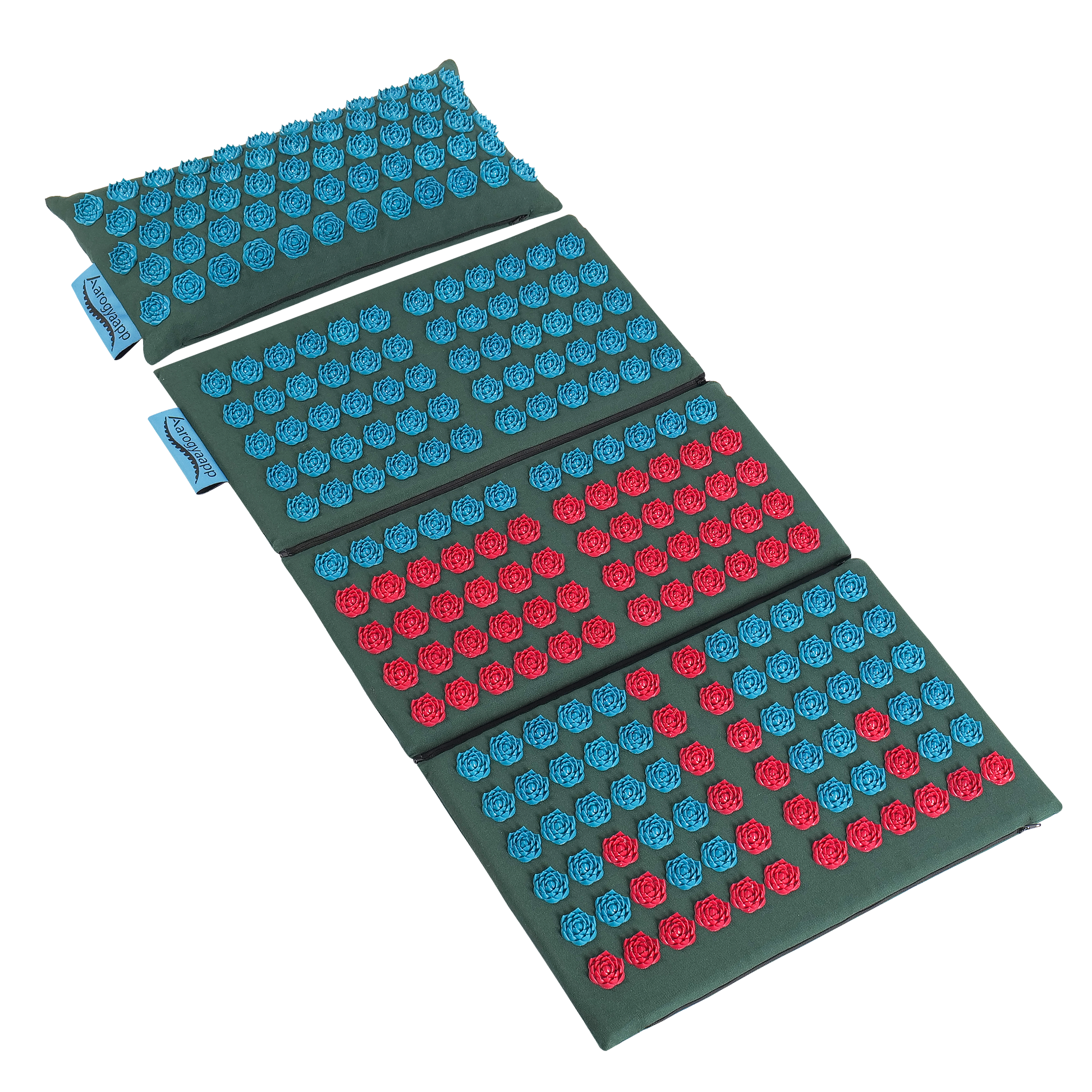 Experience deep, natural healing with our Premium Forest Green Acupressure Mat & Pillow Set with Teal Blue & Red Lotus Points, designed to activate vital pressure zones across your back, neck, and body. The multi-colour lotus-shaped acupressure nodes are scientifically arranged to stimulate nerve endings, improve circulation, and release muscle tension naturally.